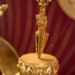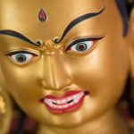JIGJÉ CHENMO is wrathful and dark red in color. She is worshipped and praised by all, and her power subdues all negative forces. Upon her utpala flower is an indestructible phurba, a ritual dagger that subdues negativity, surrounded by blazing lassoes of flames and sparks. This turbulent fire and its natural sound, HUNG, splits the heads of demons and obstructing spirits who cause delusion, insanity, and memory loss, rendering them unconscious in the state of suchness, never to rise again.