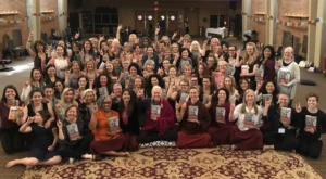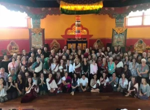 On the full moon in January, at the age of 22, in Bodhgaya, India, Lama Tsultrim is ordained as Karma Tsultrim Chödron by the 16th Karmapa, Rigpai Dorje. His Excellence (H.E.) Tai Situ, H.E. Jamgon Kongtrul, H.E. Gyaltsap Rinpoche, and H.E. Sharmar Rinpoche, the four main reincarnate tulkus, attend the ordination as her witnesses. Lama Tsultrim is the first American to be ordained by H.H. the 16th Karmapa.
