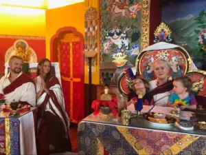 Tulku Ösel Dorje is formally enthroned as Dorje Gyalstab (Varja Regent) of Tara Mandala and receives the decree to teach and spread his guru’s, A.dzom Rinpoche’s, precious Termas and other teachings in the West.