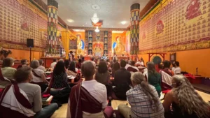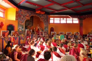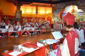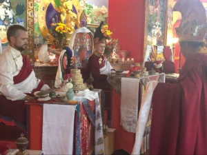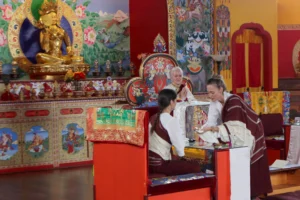 Lama Tsultrim holds the first Teacher Investiture Ceremony for 15 Tara Mandala teachers. Some have been in their role for several years and others are newly certified: Tulku Ösel Dorje, as Dorje Gyaltsab (Sanskrit Yuvarajā) “Adamantine Regent”