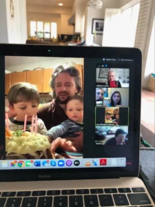 Dorje Gyalstab celebrates his 40th birthday with his family over Zoom during the pandemic.