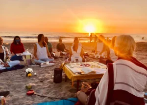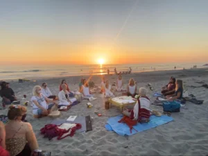 The San Diego Tara Mandala Sangha meets for Chöd practice on the beach during the COVID-19 pandemic.