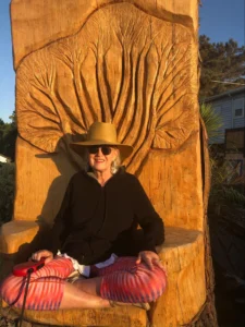 Lama Tsultrim returns to Village Cottage and visits the Goddess tree that nurtured her when she was living there 1986-1994.
