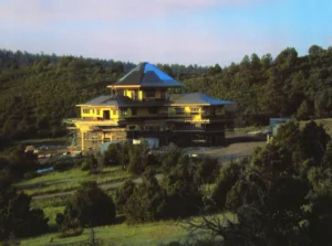 Community Building, a 6,000 sq. ft. double-walled, adobe structure is completed. It houses the kitchen, dining hall, store, full bathroom facilities, and offices.