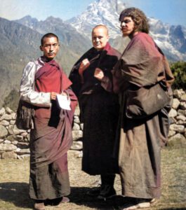 After her ordination, Lama Tsultrim returns to Nepal and studies with Kagyu Lama Sapchu Rinpoche. She stays at Kopan Monastery with Lama Thupten Yeshe and Lama Zopa Rinpoche near Lama Zopa’s cave which is near Mt. Everest at 16,000ft.