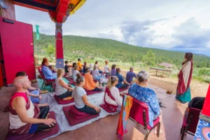 What is now the Tara Mandala retreat center sits on the ancestral lands of the Ute and Pueblo peoples of the San Juan Mountains. Lama Tsultrim and her community asked permission from the Elders of the Ute Nation to use their land as a refuge of Tibetan Buddhism in the West.