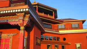 She travels to see His Holiness the Karmapa in Sikkim at Rumtek Monastery. Because she is a foreigner, she is allowed to stay for only one week.